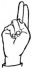 На ћирилици написано МИЊА ВИТАС састоји се из 9 слова [?]. Исписано ћириличном једноручном азбуком за глувонеме: